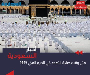 متى وقت صلاة التهجد في الحرم الساعة كم 1445 – 2024؟ متى تبدأ صلاة القيام في العشر الاواخر في السعودية