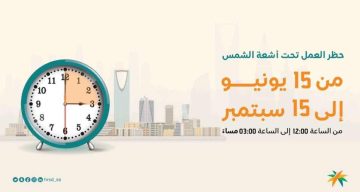تطبيق حظر العمل تحت أشعة الشمس بدءاً من هذا الموعد وفق إعلان وزارة الموارد البشرية