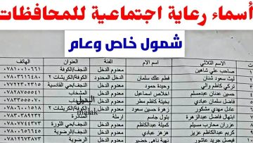 تاريخ النشر استعلم..لينك pdf كشوفات أسماء المشمولين بالرعاية الاجتماعية في العراق عن طريق منصة مظلتي الوجبة الاخيرة