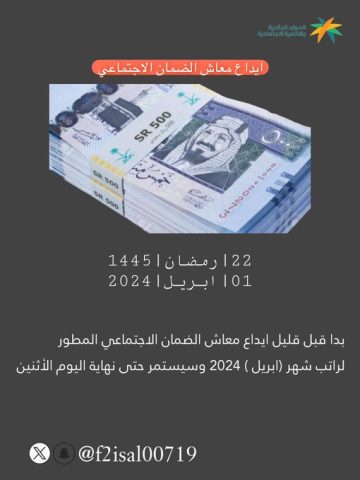 تاريخ النشر عاجل من الضمان الاجتماعي اليوم.. نزول رواتب أبريل الدورة 28 للمستفيدين في الحسابات البنكية