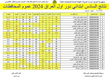 تاريخ النشر ּ؏ـااااچڷ نتائج السادس الابتدائي 2024 نتائجنا المثنى ظهرت الآن PDF استعلم برابط مباشر results بالرقم الامتحاني
