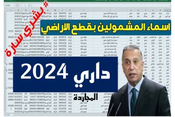 تاريخ النشر هســه اسماء المشمولين بقطع الأراضي 2024 وزارة الصحة pdf عبر منصة داري Dari.iq كل المحافظات