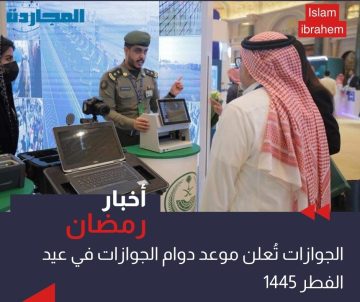 تاريخ النشر “عاجل الجوازات” تُعلن أوقات دوام الجوازات في عيد الفطر 1445 – 2024.. متى تفتح الجوازات في عيد الفطر
