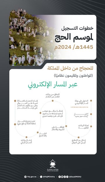 أسعار باقات الحج 1445 بين 4099 و13,265 ريالا .. وزارة الحج تعلن بدء تسجيل حجاج الداخل 𝕃𝕆ℂ𝔸𝕃ℍ𝔸𝕁.ℍ𝔸𝕁.𝔾𝕆𝕍.𝕊𝔸