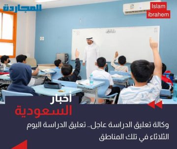 تاريخ النشر عاجل🔴 تعليق الدراسة غدا الاثنين في السعودية ببعض المناطق .. شوف هل مدرستك يشملها تحويل التعليم عن بعد ولا لا؟