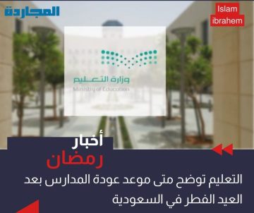 “التعليم” تُوضح متى عودة المدارس بعد العيد الفطر في السعودية 1445 – 2024 وحقيقة تمديد اجازة العيد للطلاب