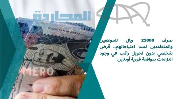 صرف 25000 ريال للموظفين والمتقاعدين لسد احتياجاتهم.. قرض شخصي بدون تحويل راتب في وجود التزامات بموافقة فورية أونلاين