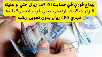 إيداع فوري في حسابك 26 الف ريال حتي لو عليك التزامات “بنك الراجحي يعطي قرض شخصي” بقسط شهري 485 ريال بدون تحويل راتب