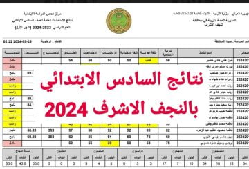 تاريخ النشر تربية النجف الاشرف بالعراق تعلن نتائج الصف السادس الإبتدائي pdf رابط تحميل الملف والاستعلام عن النتائج
