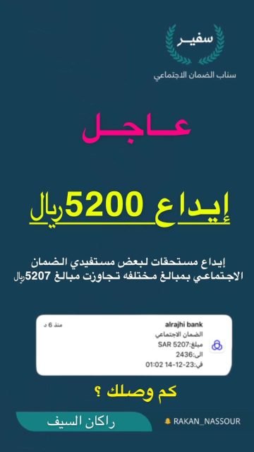 تاريخ النشر إيداع أكثر من 5000 ريال في بعض حسابات مستفيدي الضمان الاجتماعي المطور غير راتب الشهر لهذا السبب