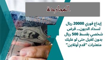 تاريخ النشر لو عليك دين متخلفش حلها جه ايداع فوري قرض شخصي 20,000 ريال سعودي بدون كفيل ولا تحويل راتب