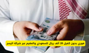 تاريخ النشر قرض سريع 20 ألف ريال بدون كفيل.. تفاصيل اليسر للتمويل الشخصي والسداد علي 3 سنوات حسب الشروط المطلوبة