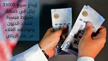 إيداع سريع 33000 ريال في حسابك بشروط ميسرة لسداد الديون ومواجهة الغلاء من بنك الرياض