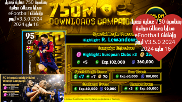بمناسبة 750 عملية تحميل هدايا وعملات مجانية وإضافات eFootball 2024 V3.5.0 ليوم 16 مايو 2024