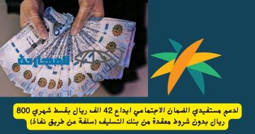 لدعم مستفيدي الضمان الاجتماعي ايداع 42 الف ريال بقسط شهري 800 ريال بدون شروط معقدة من بنك التسليف (سلفة عن طريق نفاذ)