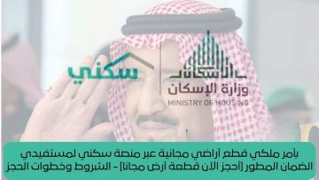 تاريخ النشر بأمر ملكي قطع أراضي مجانية عبر منصة سكني لمستفيدي الضمان المطور [أحجز الآن قطعة أرض مجانا] – الشروط وخطوات الحجز