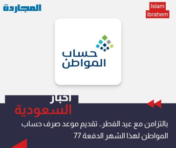 “للتزامن مع عيد الفطر” تقديم موعد صرف حساب المواطن لهذا الشهر الدفعة 77 أبريل 2024 / رمضان 1445 إلى هذا الموعد.. تعرف عليه