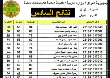 تاريخ النشر “PDFبالأسماء” نتائج السادس الإعدادي..بالخطوات الإستعلام عن نتائج السادس الإعدادي 2024 رابط كشوف النتيجة في عموم العراق